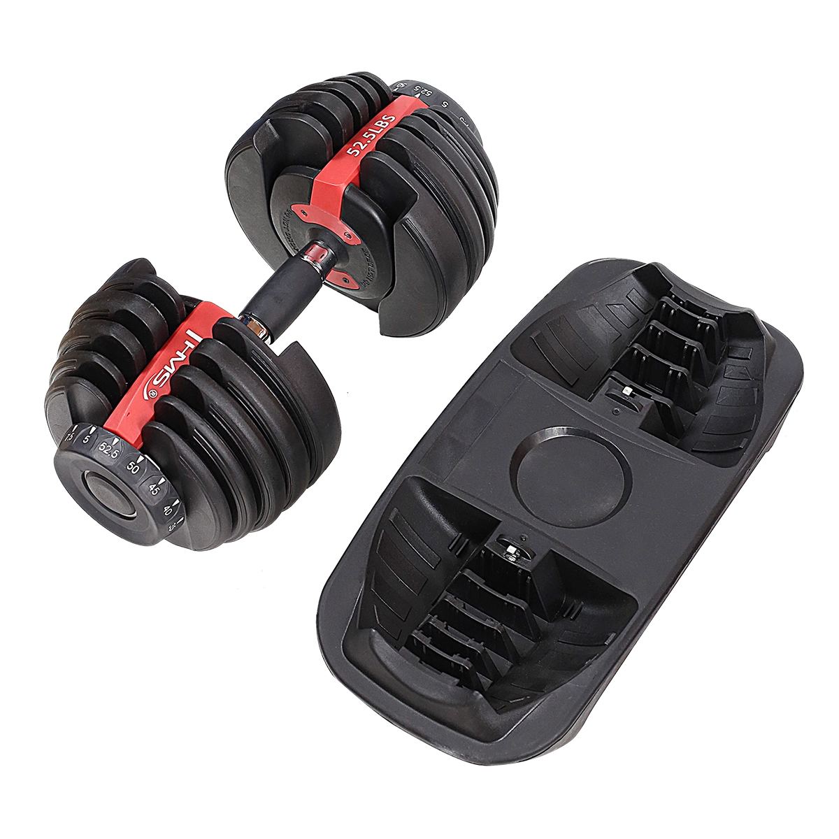 Ena utež nadomesti celoten komplet ročnih uteži. Odlagalno stojalo ohranja vse pregledno in varno na enem mestu.