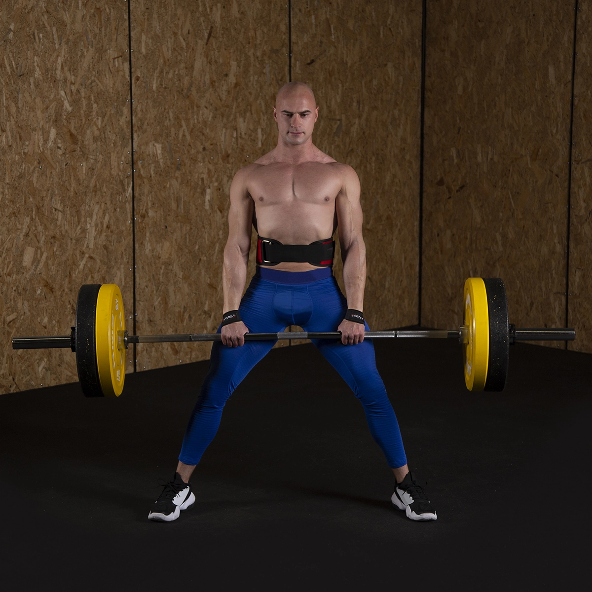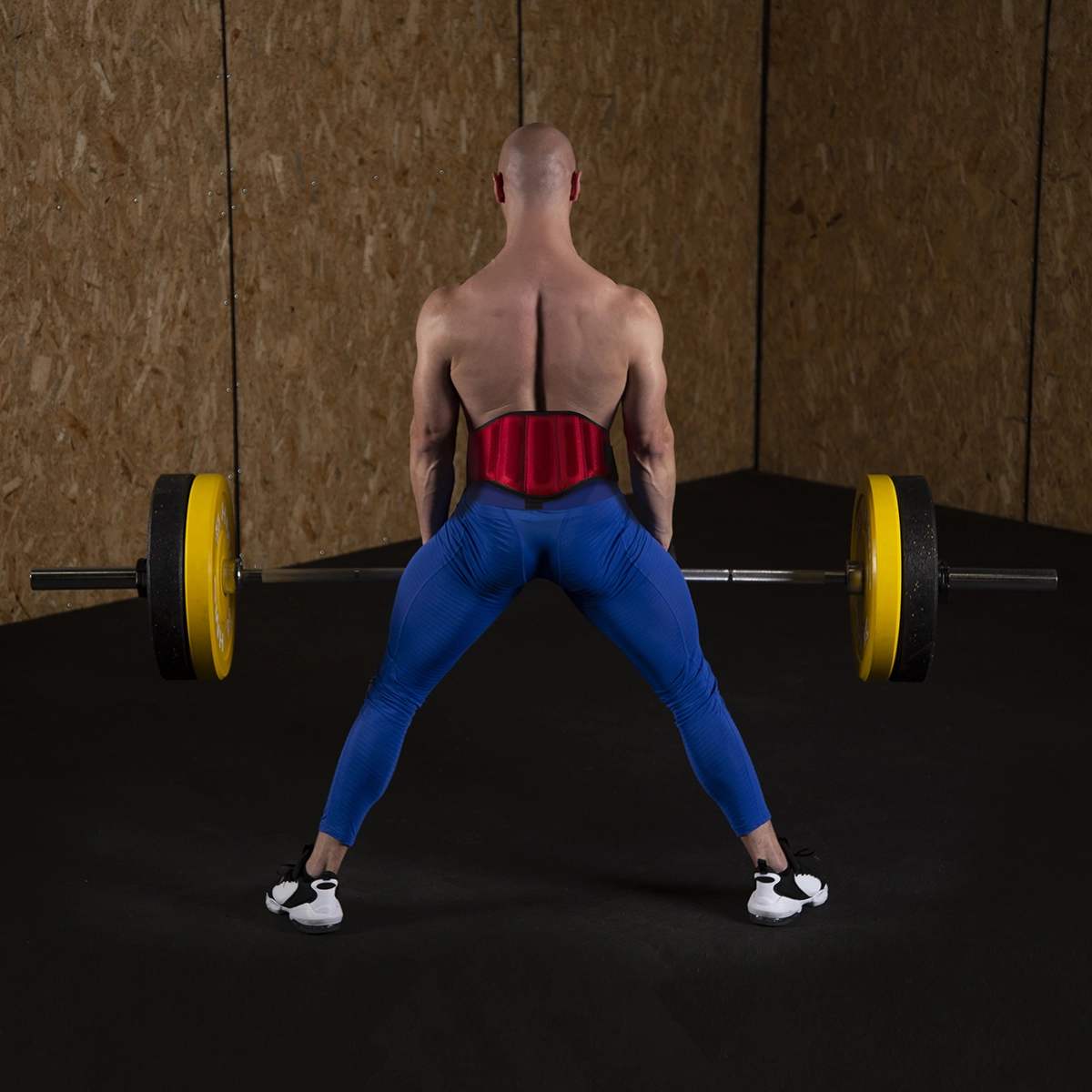 Hrbtni panel širine 19–21 cm stabilizira ledveni del hrbta in pomaga ohranjati pravilno napetost trupa pri počepih in mrtvih dvigih.