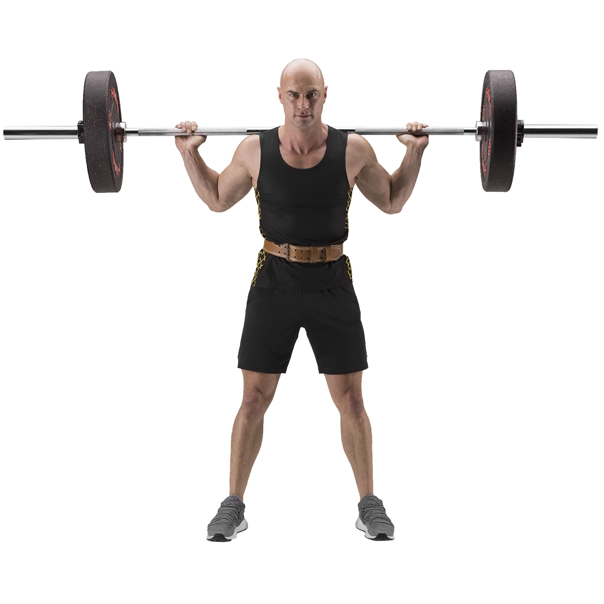 Širok, ergonomsko oblikovan zadnji del (pribl. 15 cm) razporedi pritisk, medtem ko vzdržljiva zaponka z več luknjami omogoča fino in varno zategovanje. Idealno za powerlifting, olimpijsko dviganje uteži in funkcionalni trening.