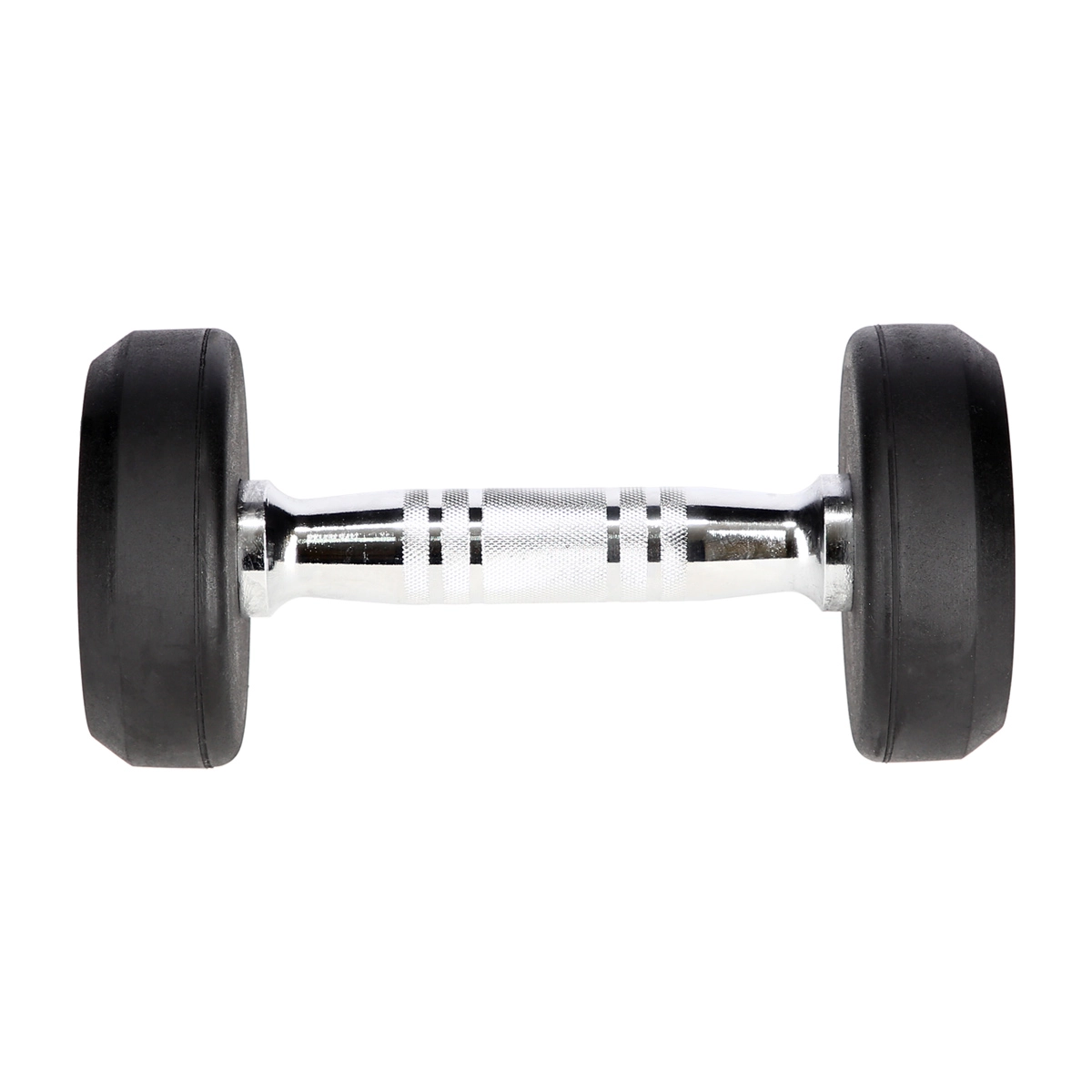 Kompaktna in trpežna enoročna utež z maso 3 kg z litoželeznim jedrom in debelo gumirano prevleko za zaščito tal in tih odložitev. Ponuja ergonomski kromiran ročaj z nazobčano površino za zanesljiv oprijem in je idealna za domačo in profesionalno vadbo.