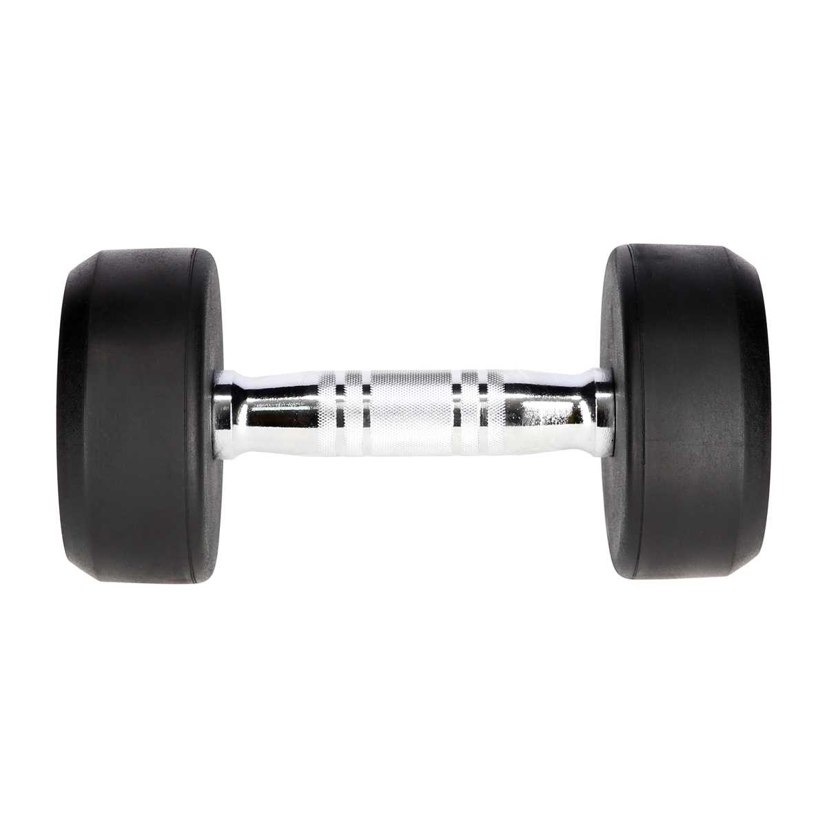 Debela plast gume blaži udarce, zmanjšuje hrup in ščiti tako utež kot vadbeno površino. Idealno za domačo telovadnico in komercialni fitnes.