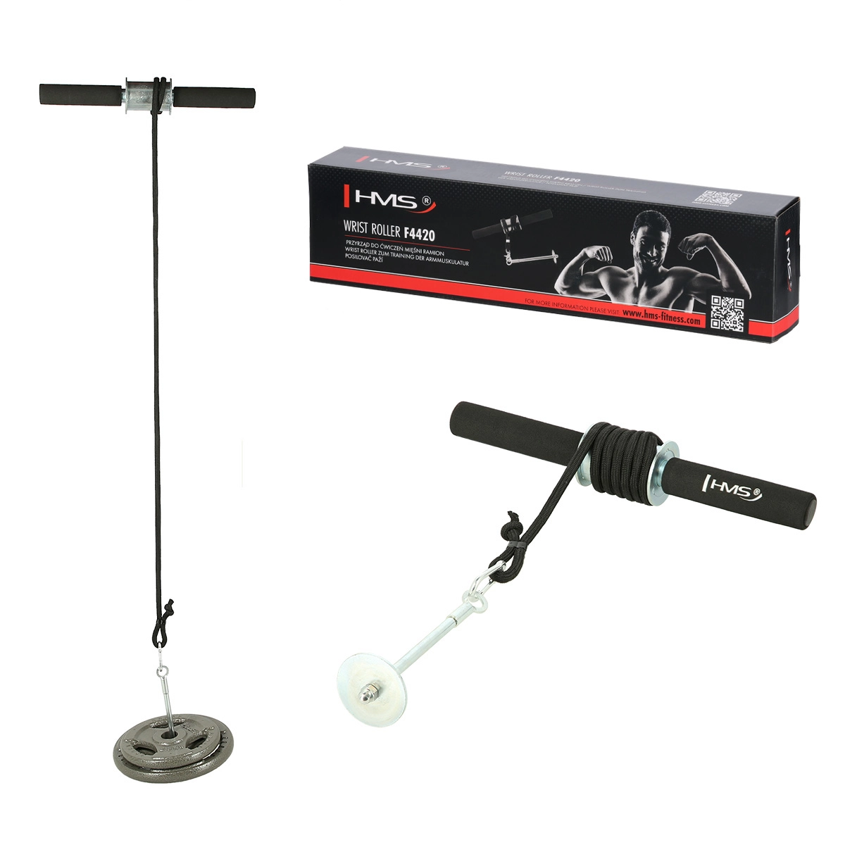 HMS F4420 je kompaktni pripomoček za krepitev podlakti za učinkovito vadbo moči in vzdržljivosti zapestja ter prijema. Princip je preprost in učinkovit: z vrtenjem ročajev navijate kabel s pritrjenimi utežmi, s čimer ustvarjate konstantno obremenitev skozi celotno gibanje. Odličen za športnike, crossfit, plezalce in domači fitnes.