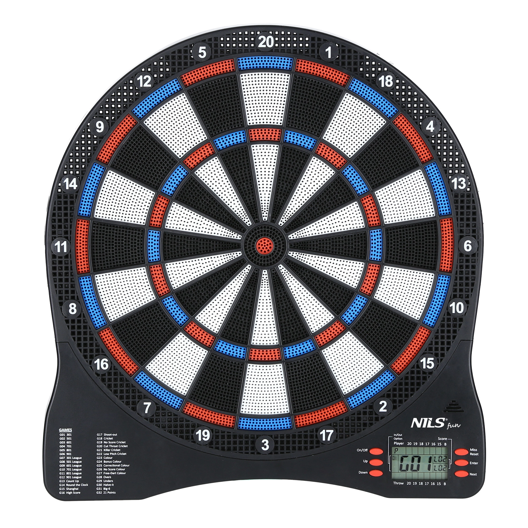 Odkrijte kombinacijo tradicije in sodobnih funkcij. NILS Fun TDE01 poskrbi za samodejno štetje točk, pregledno prikazovanje rezultatov in enostavno upravljanje. Idealen za družino in prijatelje zahvaljujoč podpori za 1–8 igralcev ter širokemu naboru 32 iger, vključno z 301, 501, 901, Shanghai, High-Score in Cricket.