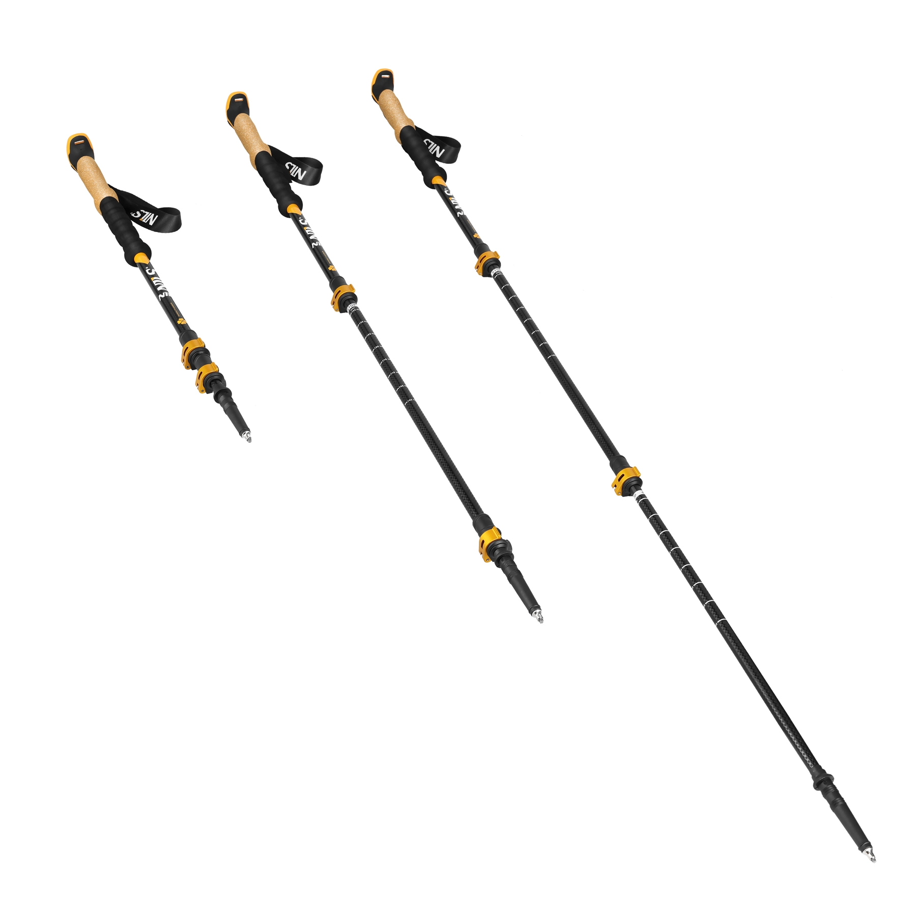 Model NILS TK8605 združuje lahkost, trdnost in stabilnost zahvaljujoč kakovostni zlitini aluminija 7075 ter tridelnemu sestavu. Ergonomski ročaji iz naravne plute in EVA pene prijetno sedejo v roko, blažijo vibracije in zagotavljajo zanesljiv oprijem tudi pri dolgih pohodih.