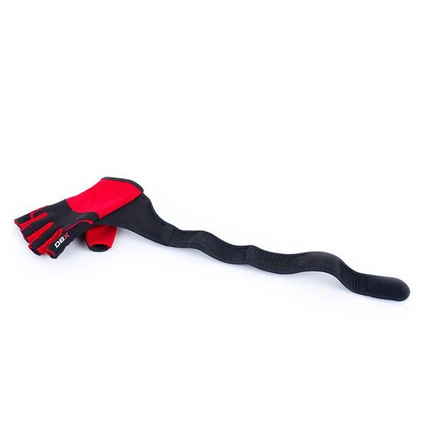 Širok elastičen trak z dvojnim ovijanjem okoli zapestij in dvojnim ježkom nudi nadpovprečno stabilnost in oporo pri potiskih, vlečenjih in vajah na drogu. Rokavice v črno‑rdeči barvni kombinaciji so izdelane iz mešanice sintetičnega usnja, poliestra in gume, zato dobro sedejo, ne drsijo in zdržijo dolgotrajno uporabo.