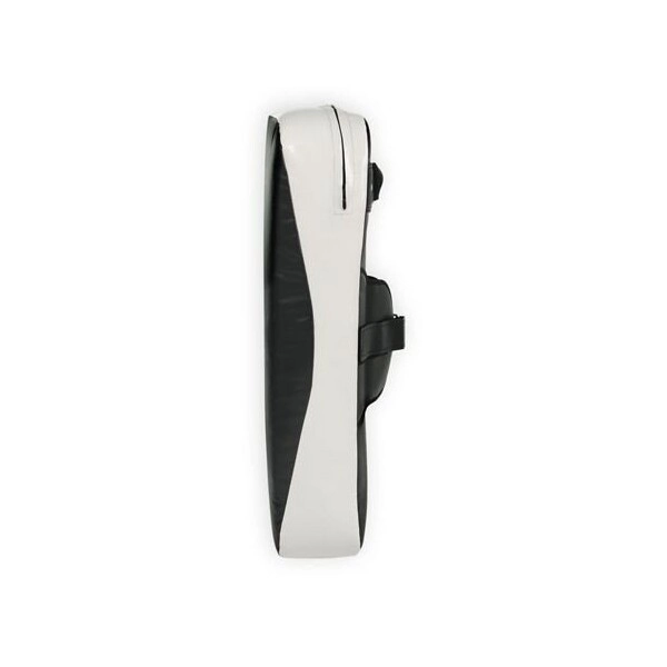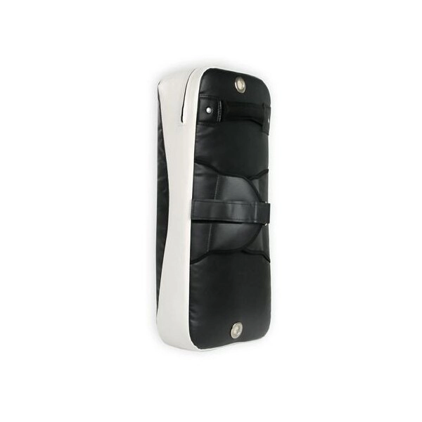 Profesionalna trening blazina za borilne veščine z razširjenim profilom za zaščito komolca, izdelana iz vzdržljivega 7-slojnega materiala, z ojačanimi trakovi s kovinskimi zaponkami in dvema zračnikoma za odvod pritiska. Stabilen oprijem zagotavlja široko zapenjanje, črno-bela izvedba pa doda sodoben videz vsakemu treningu.