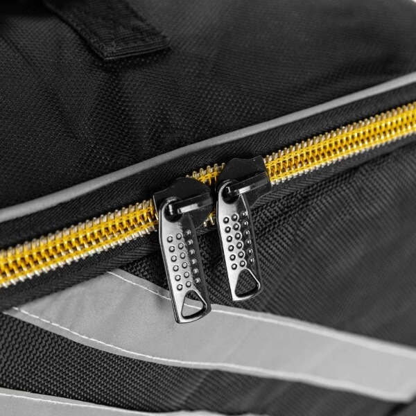 - Trpežna zasnova: vodoodporen material, najlonski trakovi, ojačane zadrge