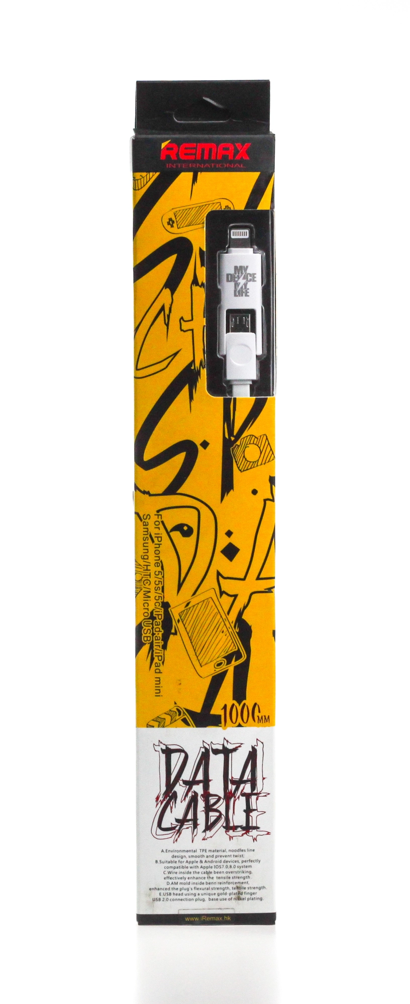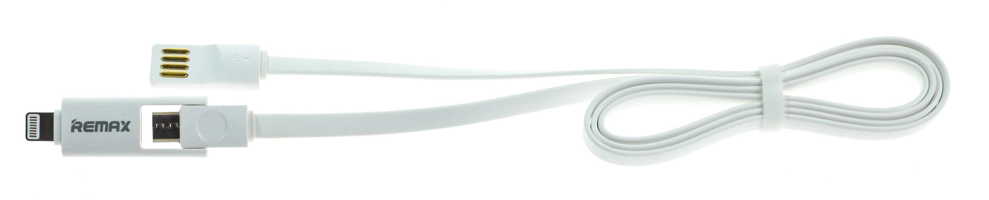 Iščete en kabel za več naprav? Ta bel kabel REMAX z micro USB in priloženim Lightning adapterjem omogoča polnjenje in sinhronizacijo podatkov za širok nabor telefonov in dodatkov, vključno z iPhone 5 in 6. Lahka zasnova se prilega v žep, torbo ali nahrbtnik, zato imate zanesljivo povezavo vedno pri roki.