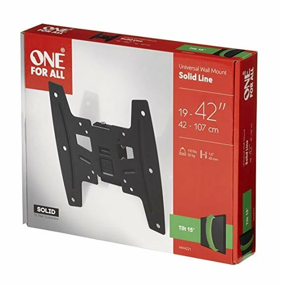 Nosilec ONE FOR ALL Solid Tilt WM4221 je idealna izbira za varno in elegantno namestitev sodobnih LED/LCD televizorjev z diagonalo 42–109 cm. Zahvaljujoč nagibnemu mehanizmu zlahka nastavite optimalni kot gledanja ter zmanjšate neželene odseve, ne da bi pri tem porušili dizajn interierja.