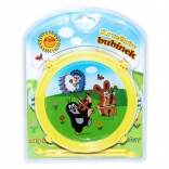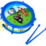 Priljubljen otroški motiv KRTKA združuje zabavo in učenje. Lahek plastični boben s premerom 20 cm je enostaven za držanje in zahvaljujoč priloženim paličicam lahko otrok začne bobnati takoj. Trak omogoča igranje stoje ali na sprehodu, zato je boben odličen spremljevalec doma in na prostem.