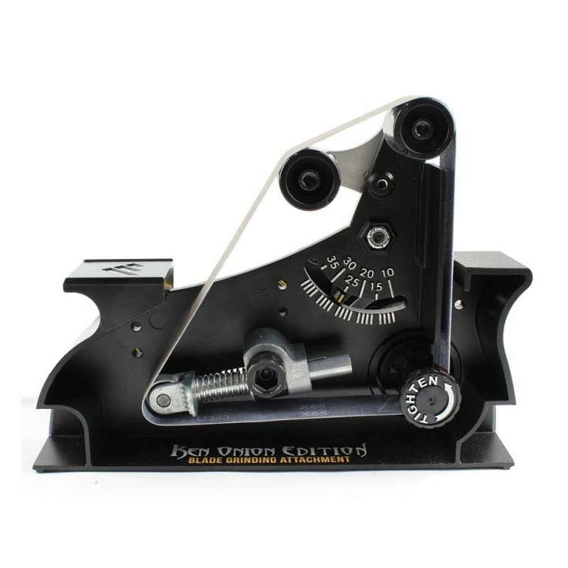 Nastavek Work Sharp Blade Grinder spremeni vaš brusilnik Ken Onion Edition v vsestranski tračni brusilnik. Zahvaljujoč spremenljivi geometriji vodenja, regulaciji napetosti traku in natančni nastavitvi kota 10–35° dobite popoln nadzor nad rezilom – od nežnega prebrušenja do agresivnega odvzema materiala in oblikovanja profila rezila.
