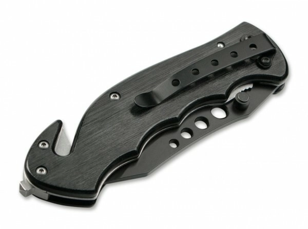 Varnost in funkcionalnost zagotavlja zaklep Linerlock ter robusten ročaj iz črno eloksiranega aluminija z emblemom enote. V nujnih primerih boste cenili integriran lomilec stekla in rezalnik varnostnih pasov, žepna sponka pa poskrbi za udobno nošenje in takojšnjo dostopnost.