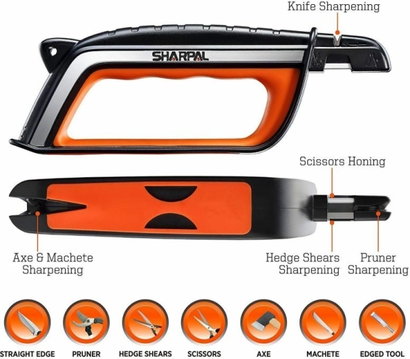 Večnamenski brusilec Sharpal 103N za hitro in varno vzdrževanje rezil doma in na vrtu. Tri brusne reže z vnaprej nastavljenim kotom ter karbidno in keramično letvico zagotavljajo učinkovito obnovo ostrine nožev, škarij, kosilnic, mačet, sekir, motik in dlet. Udobno uporabo omogočajo velik mehak ročaj, nedrseče dno in odprtina za vrvico.