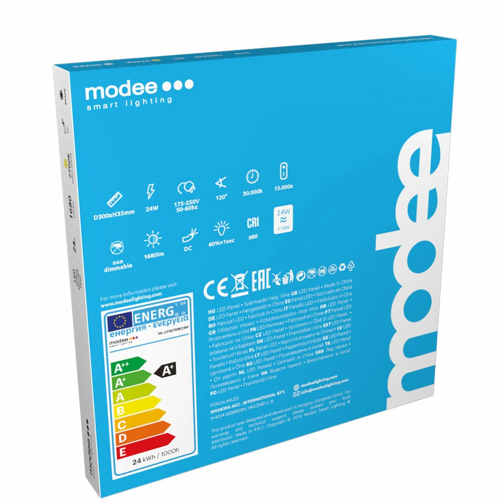 Eleganten in tanek LED panel Modee je idealen za sodobne interierje, kjer boste cenili enakomerno in prijetno svetlobo brez utripanja. Topla bela 2700 K ustvarja prijetno, domačno vzdušje v dnevni sobi, spalnici in na hodniku. Zaradi takojšnjega zagona pod 1 sekundo se svetloba prižge brez zamika, z indeksom barvnega podajanja CRI > 70 pa nudi naravno podajanje odtenkov.