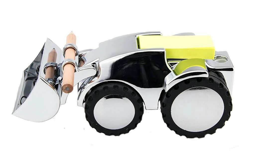 Elegantni namizni organizator v obliki bagerja združuje zabaven dizajn in pametno funkcionalnost. Ponuja magnet za sponke, šilček za svinčnike, držalo za pero/svinčnik vključno z 1 svinčnikom ter dispenzer samolepilnih lističev (80 listov) – vse na enem mestu za urejeno delovno mizo.