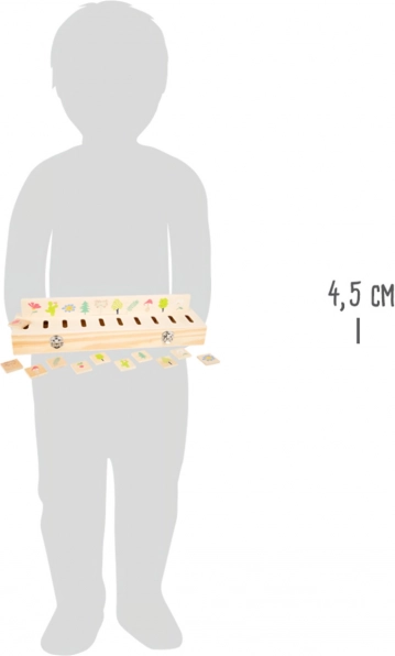 Za otroke, ki želijo odkrivati, kako stvari delujejo, je ta lesena motorična izobraževalna igrača od Small Foot idealna izbira. Namenjena je za razvrščanje rastlin, sadja in živali, kar pomaga pri razvoju prepoznavanja barv in oblik pri otrocih. Vse se lahko enostavno shrani v igralnem okvirju.