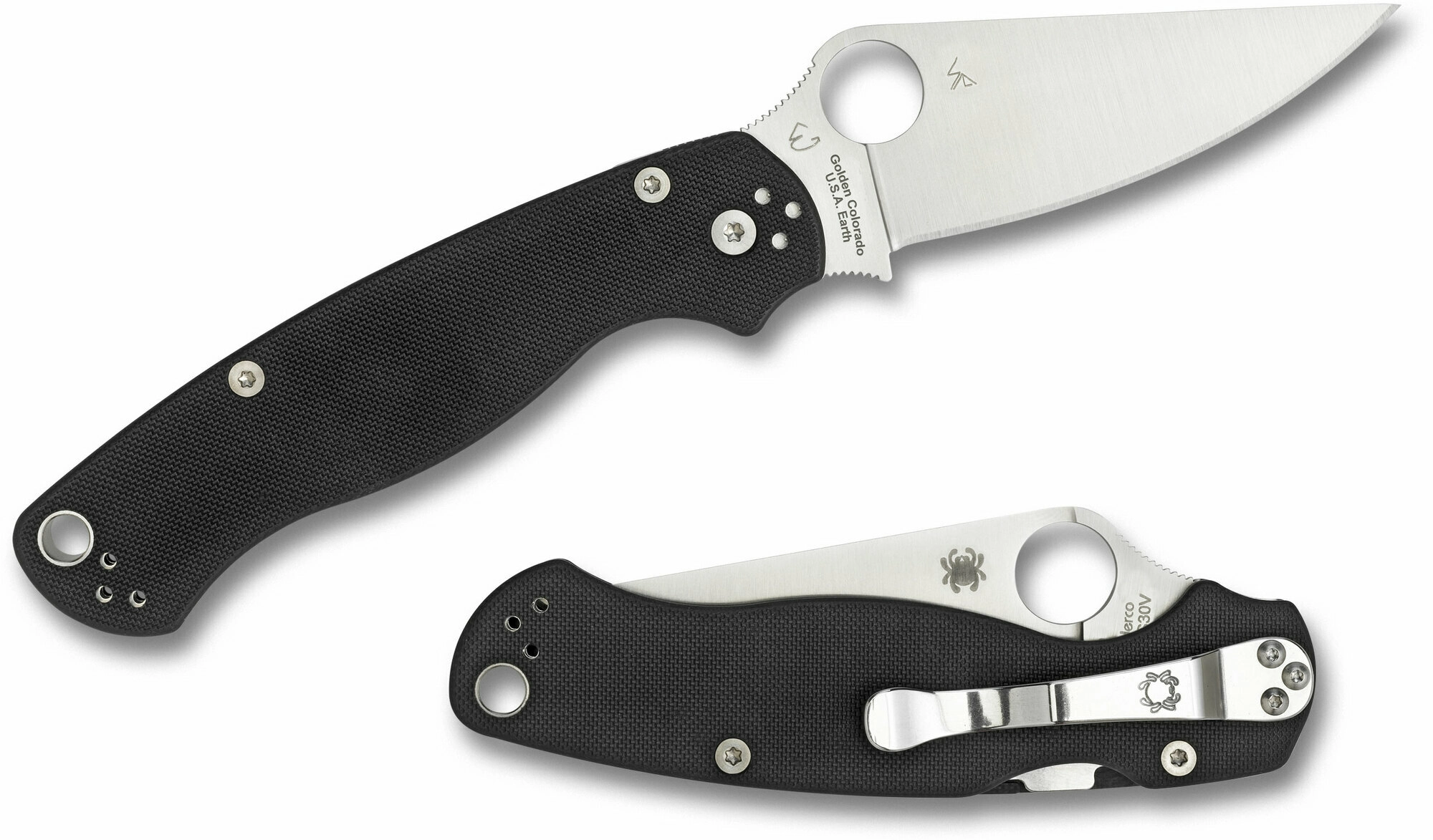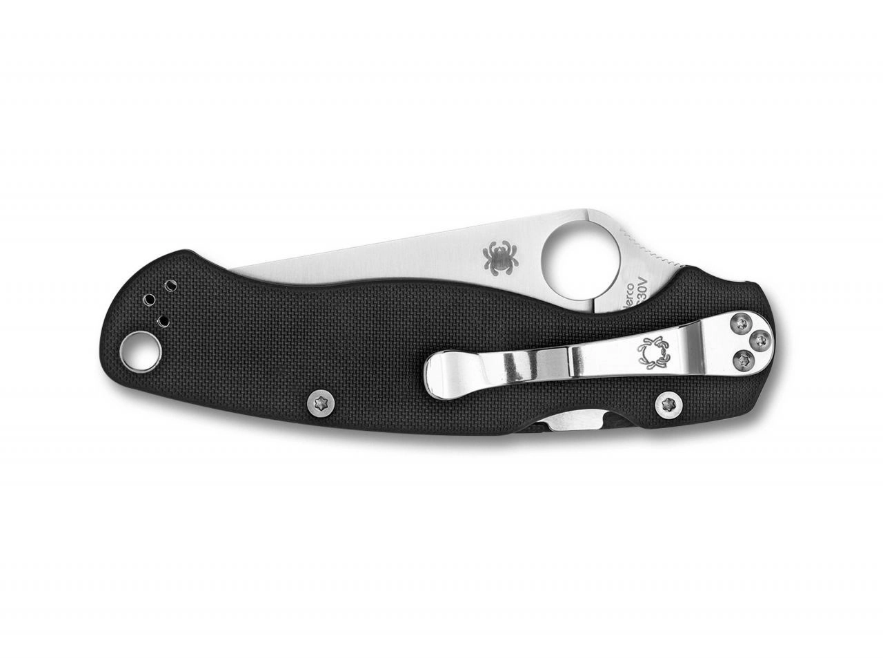 Ročaj iz trpežnega G10 v črni barvi je teksturiran za varen, nedrseč oprijem. Nož se odpira s prepoznavno Spyderco okroglo odprtino za palec, za varno delo pa skrbi robustni Compression Lock. Pripeta žepna sponka in odprtina za vrvico povečujeta uporabnost pri vsakodnevni rabi.