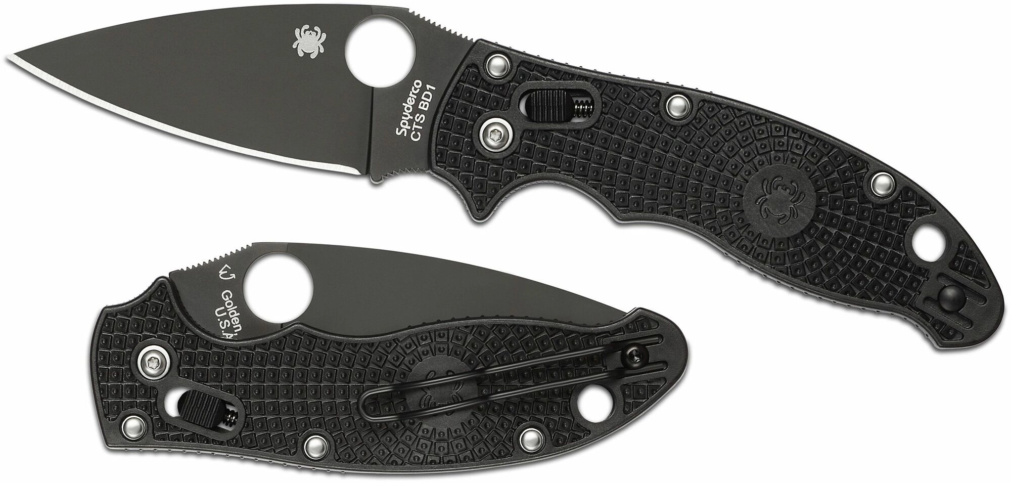 Spyderco Manix 2 Lightweight Black je priljubljen EDC nož, ki združuje majhno težo, visoko vzdržljivost in taktičen videz. Rezilo s ploskim brusom iz jekla Carpenter BD-1 ima črno, nereflektivno DLC površinsko obdelavo za boljšo odpornost proti obrabi in koroziji. Odpiranje je hitro in intuitivno zahvaljujoč značilni palčni odprtini Spyderco.