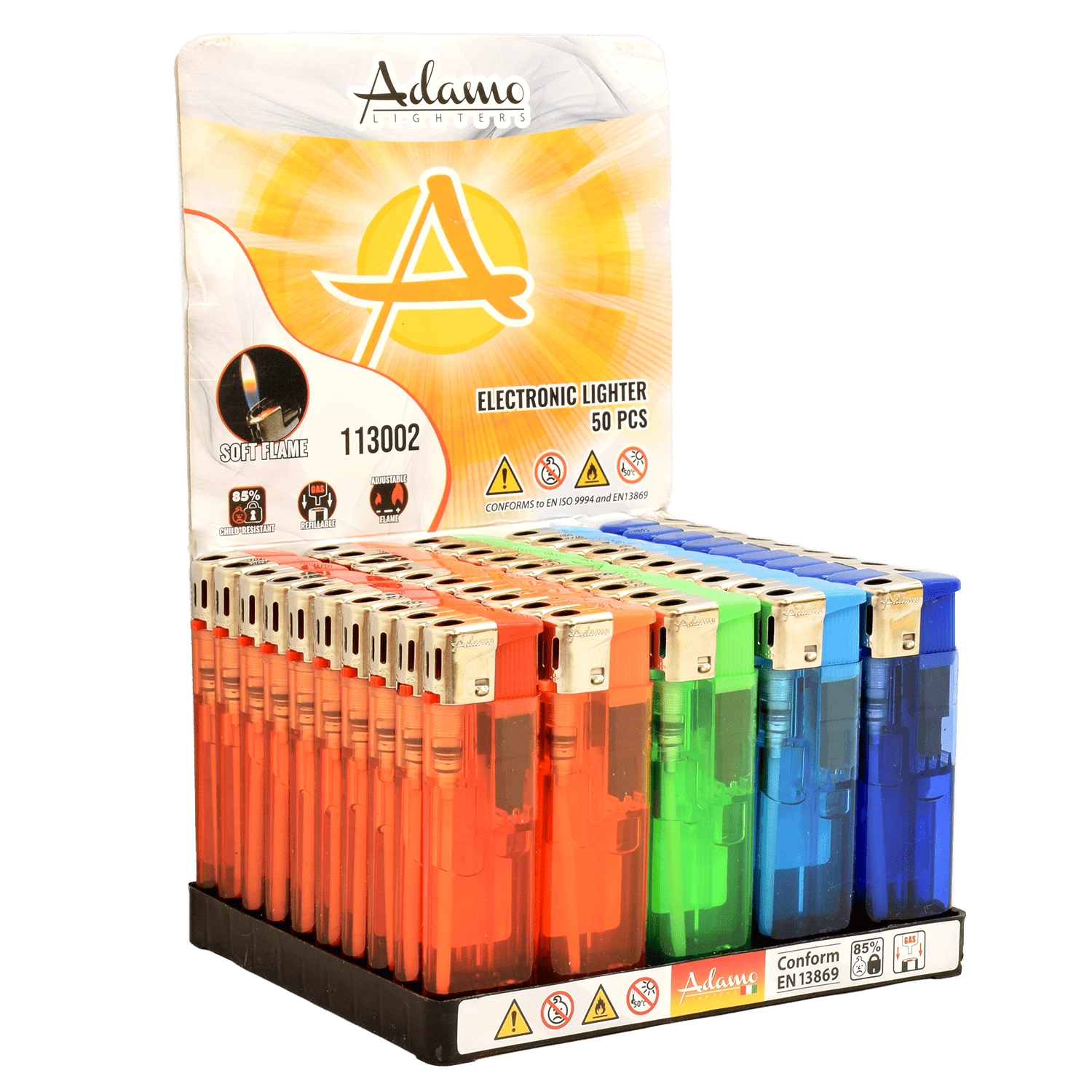 Zaradi ponovno polnjive zasnove je vžigalnik ekonomičen in prijaznejši do okolja. Pakiranje vsebuje 50 kosov, kar je idealno za kioske, trafike, gostinske obrate in dogodke. Minimalno naročilo je 50 kosov, cena je navedena za 1 kos.