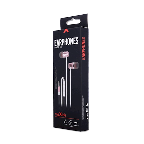 Maxlife MXEP-03 so lahke in udobne žične in-ear slušalke, primerne za na pot, v službo in v šolo. V elegantni izvedbi rose gold odlično dopolnijo vaš slog, medtem ko uravnotežen zvok s frekvenčnim razponom 20–20 000 Hz poskrbi za prijetno poslušanje glasbe in podcastov.