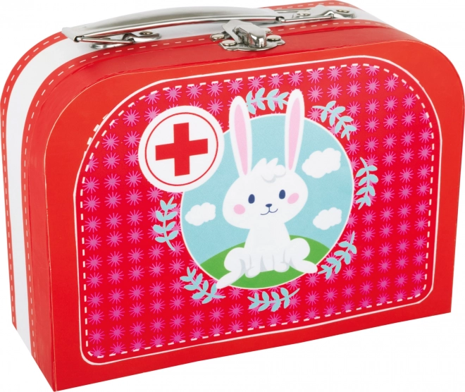 Prisrčen set za male zdravnike: SMALL FOOT zdravniški kovček z zajčkom prinaša 9-delni komplet v praktičnem prenosnem kovčku ter mehkega plišastega zajčka za igro ambulante. Otroci od 3 let lahko skrbijo za paciente s stetoskopom, termometrom in injekcijsko brizgo iz varnih materialov les, karton in tkanina.