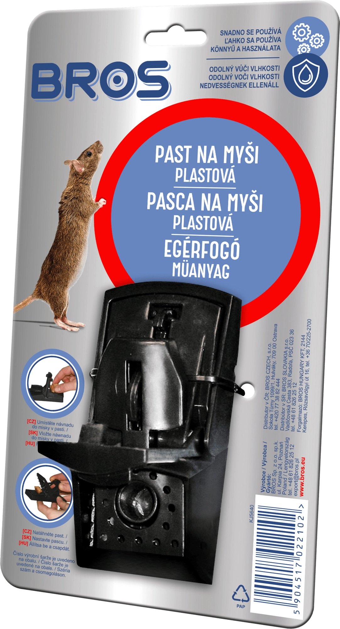 Iščete zanesljivo rešitev proti neželenim glodalcem? Plastična past za miši BROS izstopa po enostavni uporabi in visoki učinkovitosti. Zaradi trpežne plastične konstrukcije je primerna tudi za bolj vlažne prostore, kot so kleti ali garaže.