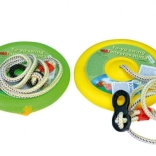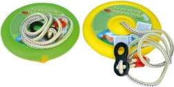 V paketu so udoben sedež, močna vrv (pribl. 175 cm) in element za obešanje – montaža je hitra in nezahtevna. Priporočena višina obešanja sedeža je 35–59 cm nad tlemi. Izdelek je izdelan iz lahke in trpežne plastike, izpolnjuje CE in EN 71 in je namenjen otrokom od 3 let. Uporabljajte vedno pod nadzorom odrasle osebe.