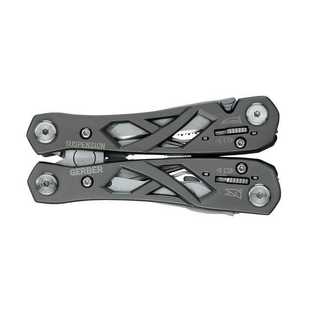 Gerber Suspension je zanesljiv multitool, zasnovan za vsestransko uporabo doma, v delavnici in na terenu. Ogrodna konstrukcija iz nerjavnega jekla znižuje težo in hkrati povečuje vzdržljivost, medtem ko sistem Saf.T.Plus blokira posamezna orodja za varnejše delo. Metuljasto odpiranje omogoča hitro pripravljenost orodja vedno, ko ga potrebujete.