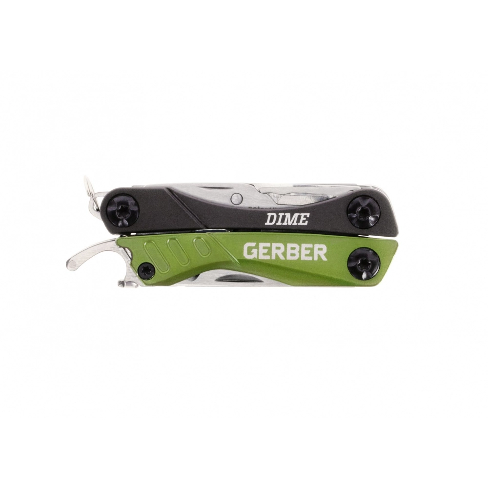 Kompaktno večnamensko orodje Gerber Dime je idealno za vsakodnevno nošenje in hitra popravila. Ponuja 12 praktičnih funkcij, trdno konstrukcijo iz nerjavnega jekla in udobno metuljasto odpiranje. V sivo‑zeleni izvedbi in z možnostjo pripenjanja na ključe je odličen spremljevalec za rezanje embalaže, striženje in vijačenje kadarkoli in kjerkoli.