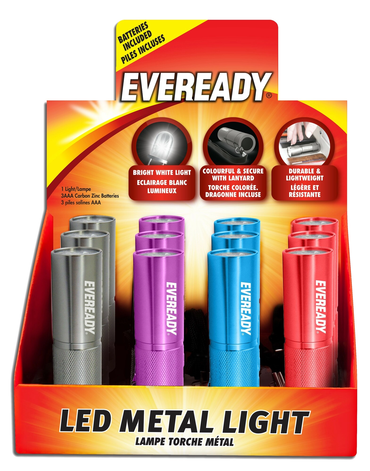 Kompaktna žepna svetilka ENERGIZER Eveready Metal je idealna za ključe in žep. Ponuja kovinsko ohišje za večjo odpornost, napajanje 3× AAA za enostavno zamenjavo ter prodajo po 1 kos v različnih barvah (črna, purpurna, turkizna, rdeča).