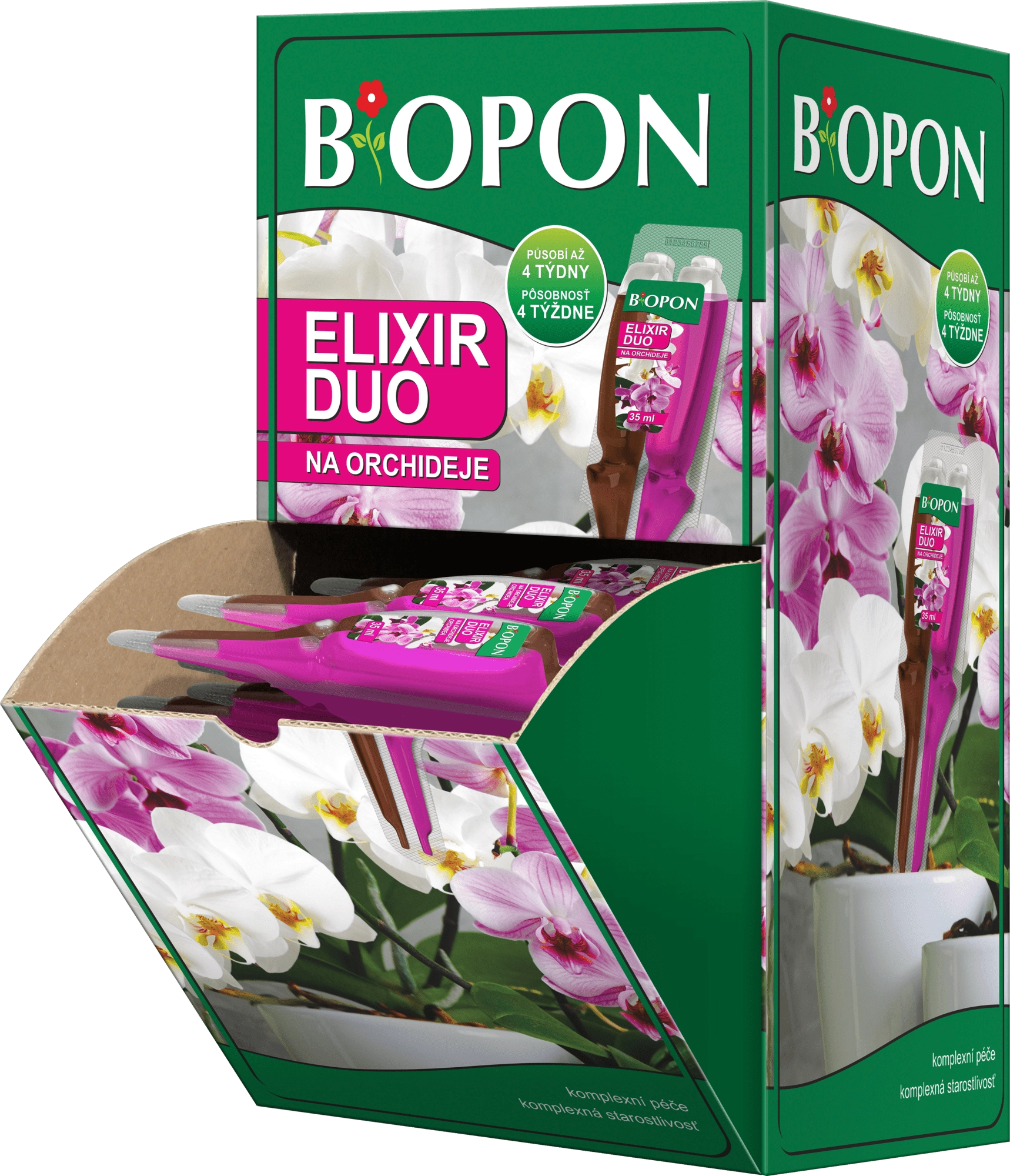 BOPON duo eliksir za orhideje je pametna rešitev za hitro oživitev in dolgotrajno nego. Rožnati regenerator dovaja ključna hranila za rast in bogato cvetenje, medtem ko rjavi regenerativni pripravek krepi rastline, jim pomaga obvladovati stres in obnavlja njihovo naravno ravnovesje.