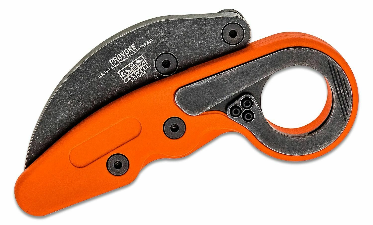 CRKT PROVOKE ORANGE je sodoben karambit za vsakodnevno nošenje, ki izstopa po gladkem in varnem upravljanju. Edinstven kinematični mehanizem omogoča hitro odpiranje s potiskom palca, pri čemer rezilo gladko preide v delovni položaj in se trdno zaklene. Stonewash površina zmanjšuje vidnost prask in povečuje odpornost pri pogosti uporabi.