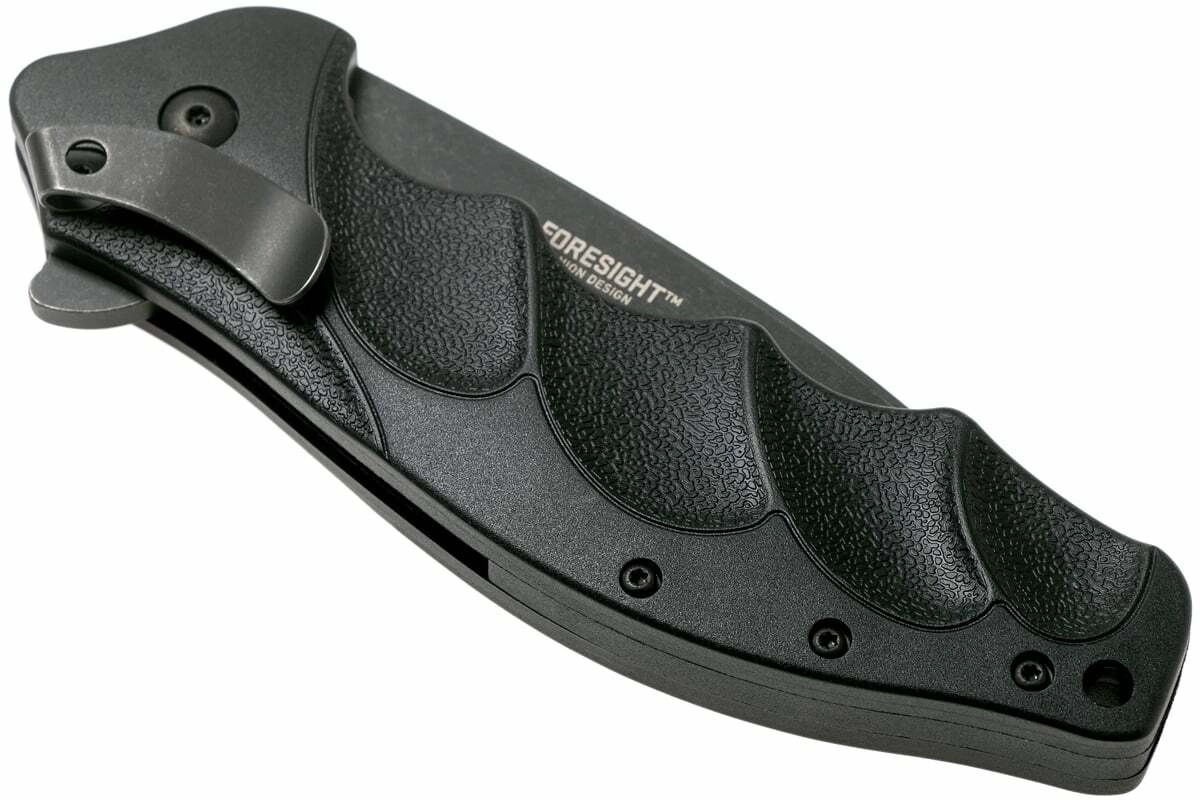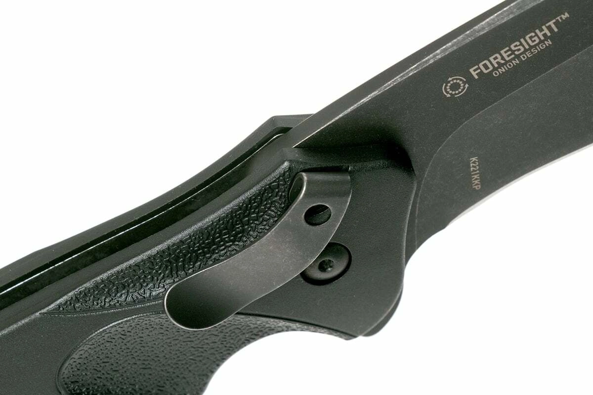 Taktični EDC nož CRKT Foresight Blackout, zasnovan s strani Kena Oniona, združuje hitro asistirano odpiranje, rezilo iz jekla 1.4116 s premazom Black Stonewash in ergonomski ročaj iz FRN z utori za prste za zanesljiv oprijem.