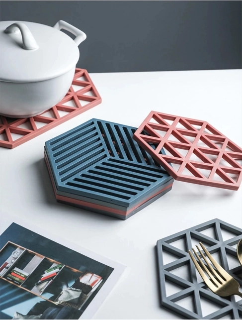 Zaradi prožnega silikona se podstavek enostavno čisti, ne drsi in je primeren za različne vrste površin. Kompaktna oblika omogoča preprosto shranjevanje ali razporeditev več kosov drug ob drugem.