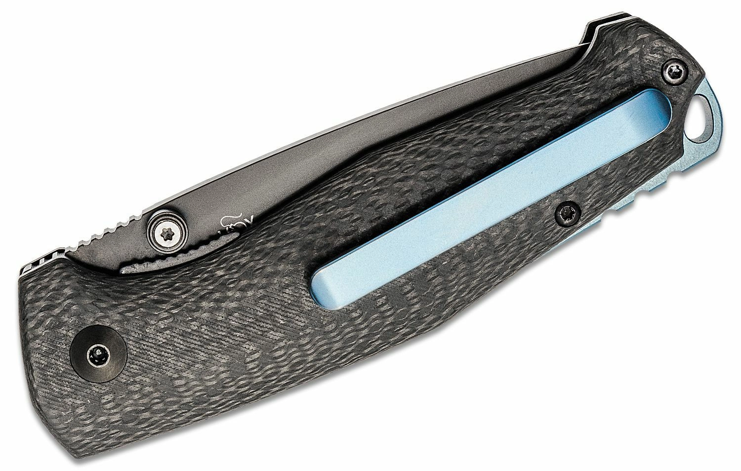 Ergonomsko oblikovan ročaj iz ogljikovih vlaken z elegantnim modrim vložkom odlično leži v roki. Praktična žepna sponka omogoča diskretno nošenje, odprtina za vrvico pa razširja možnosti pritrditve. Nož je idealen za EDC, pohodništvo in lažja opravila.