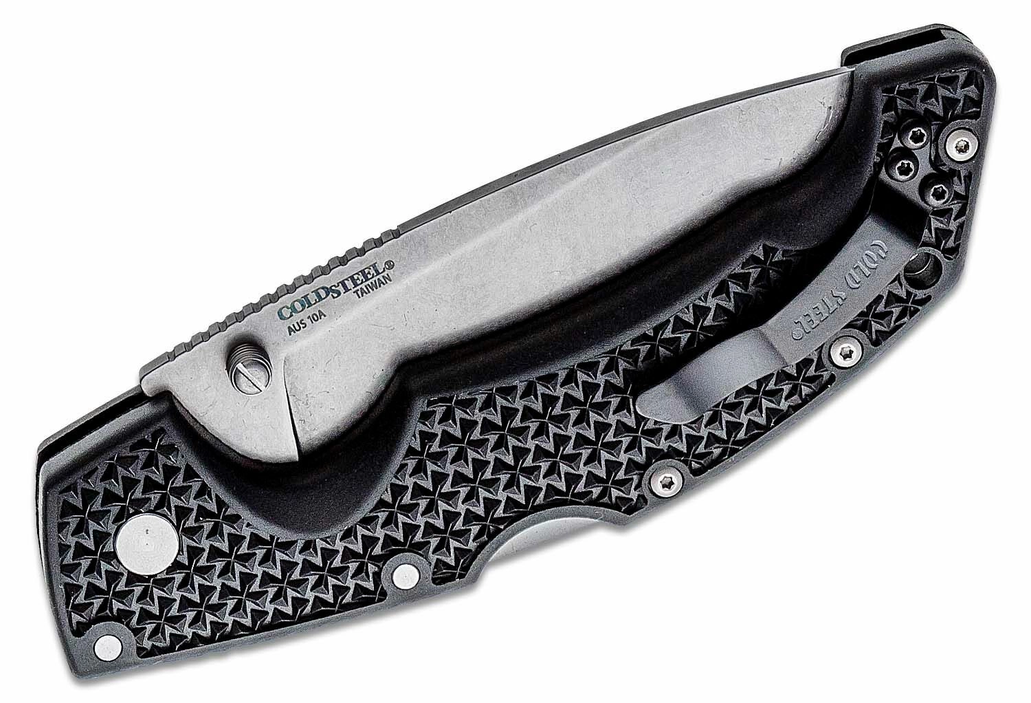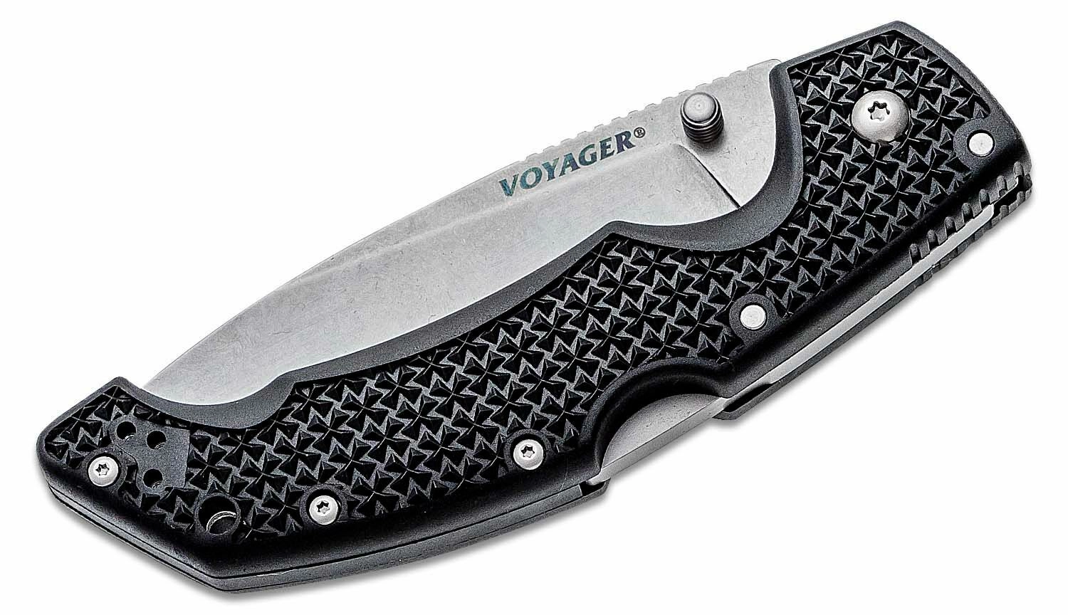 Univerzalen zložljiv nož Cold Steel Voyager Large Drop Point je zanesljiva izbira za lov, pohodništvo in vsakodnevno nošenje. Ponuja rezilo iz japonskega jekla AUS10A s površinsko obdelavo stonewash, varnostno zaporo Tri-Ad Lock, palčni zatič za hitro odpiranje ter lahko, a odporno ročko Griv-Ex z žepnim sponkom.