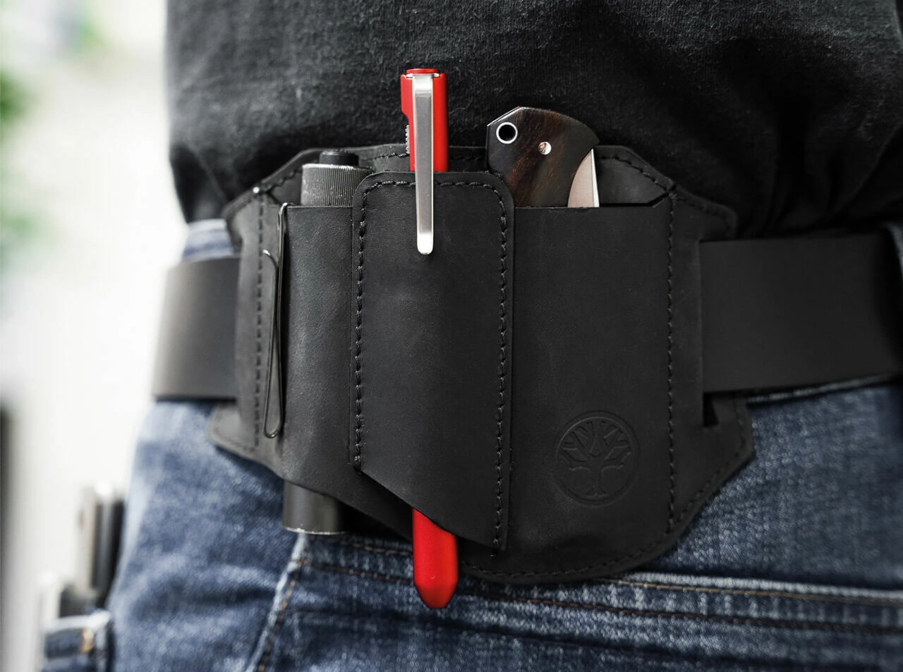 Stilski etui za EDC navdušence, ki združuje funkcionalnost in vrhunsko izdelavo znamke BÖKER. Glavni velik žep sprejme žepni nož z ročajem do 10 cm, dve dodatni spodaj odprti pregradi pa sta idealni za svetilko in pero. Nubuk usnje je prijetno na dotik, odporno in s časom pridobi edinstveno patino.
