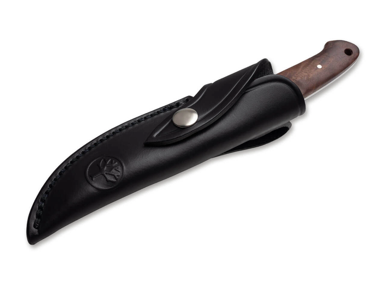Kompakten lovski in outdoor nož iz delavnice BÖKER, kován iz enega kosa jekla (full-tang) za maksimalno trdnost. Ponuja rezilo iz nerjavnega jekla 440C z gladkim robom, ročno obdelan orehov ročaj ter varno zaščito za zaščito prstov. Priloženo je usnjeno etui za udobno nošenje.