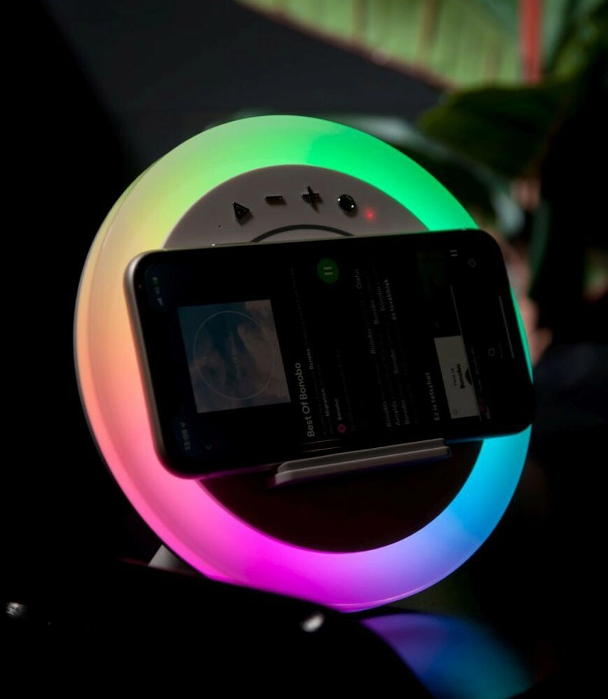 Pridobite več funkcij v eni elegantni napravi. Zelux 3-v-1 prihrani prostor na pisalni ali nočni omarici ter ponuja kakovostno poslušanje, praktično brezžično polnjenje in prijetno RGB osvetlitev za vsak trenutek. Zahvaljujoč WPC Qi brezžični tehnologiji boste združljive telefone napolnili preprosto s polaganjem na površino.