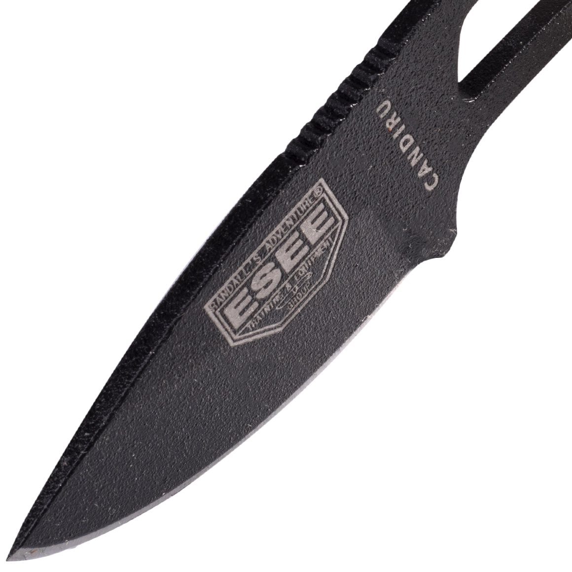 Kompakten vratni nož ESEE Candiru je lahek, vzdržljiv in zasnovan za vsakodnevno nošenje, outdoor in survival. Polnovredno rezilo iz ogljikovega jekla 1095 s črno zaščitno površinsko obdelavo nudi odlično rezalno zmogljivost, skeletiziran ročaj z možnostjo ovijanja s paracord vrvico zmanjšuje težo in izboljša oprijem. Priložen je lahek plastični/kydex tok za varno in prilagodljivo nošenje okoli vratu ali na opremi.