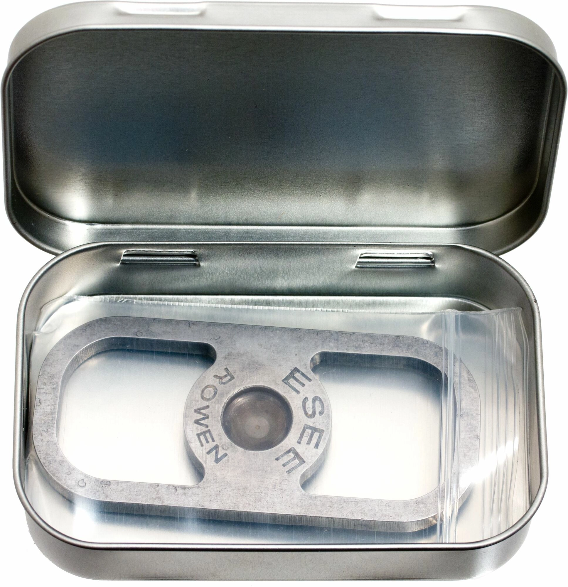 Premišljena oblika združuje več funkcij v enem: ostri robovi služijo kot učinkovit udarjalnik za ferro palico, osrednji koničnik pa uporabite kot trn za lok vrtalnik. Priložena pločevinasta škatlica s preklopnim pokrovom je odlična za izdelavo oglenine (char cloth) in za varno shranjevanje drobnih netiv.