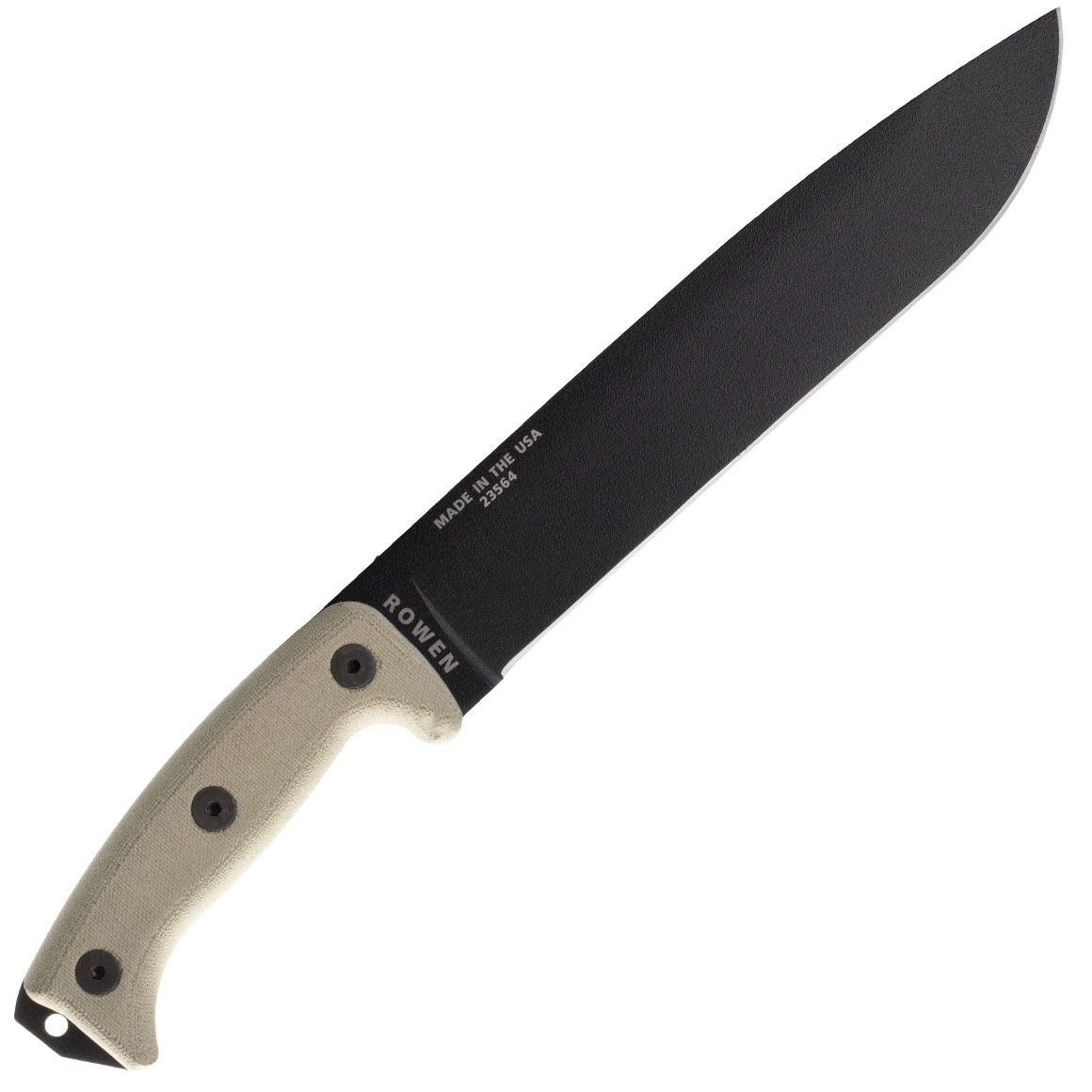 Teksturirani ročajnici Micarta v peščeno rjavi barvi zagotavljata zanesljiv oprijem tudi v mokrem. Na koncu je odprtina za paracord in praktična glavica.