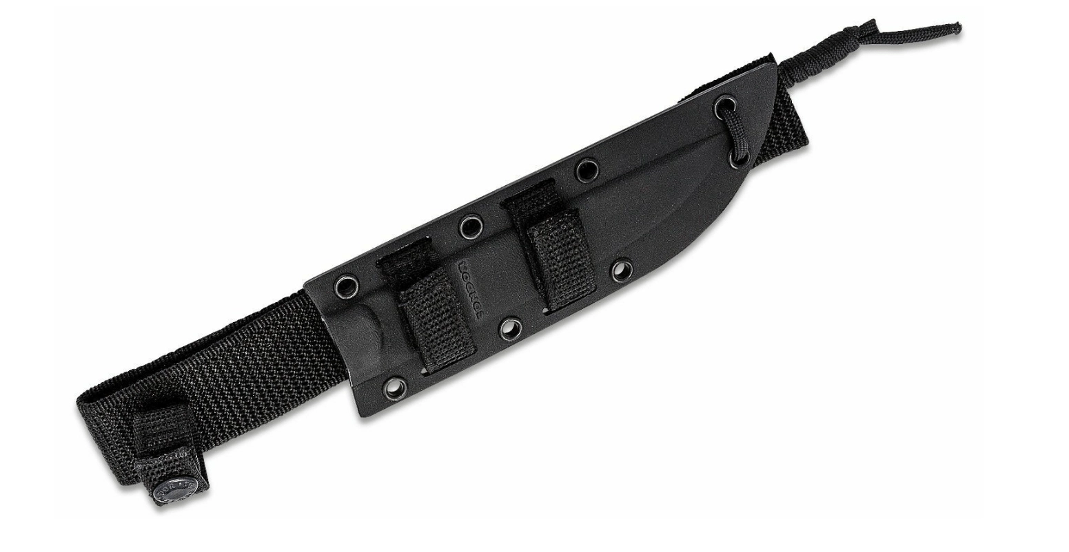 Priložena je kombinirana nožnica iz nailona in kydexa s sistemom MOLLE na zadnji strani za prilagodljivo pritrditev na opremo. Nož je idealen za taktične naloge, preživetje v naravi, kampiranje in vsakodnevna zunanja opravila.