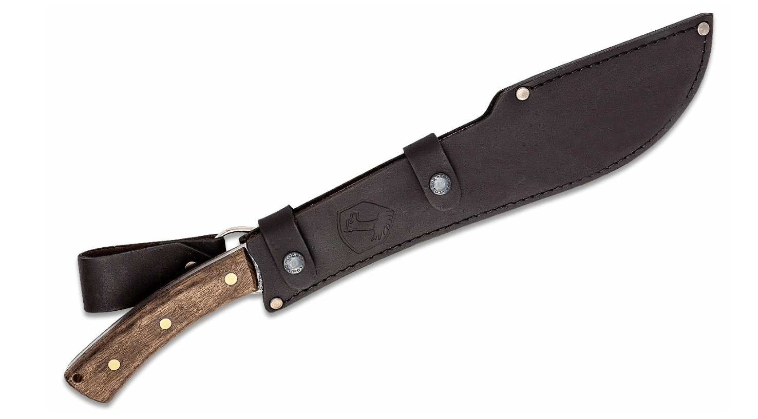 Mačeta Condor Jungolo je zanesljivo orodje za sekanje in redčenje na terenu. Srednje dolgo rezilo iz odpornega ogljikovega jekla 1075 se zlahka brusi, odlično drži ostrino in z naravno površinsko obdelavo deluje rustikalno ter vzdržljivo. Ergonomsko oblikovan ročaj iz orehovega lesa z medeninastimi zakovicami in odprtino za vrvico zagotavlja zanesljiv oprijem tudi pri daljšem delu.