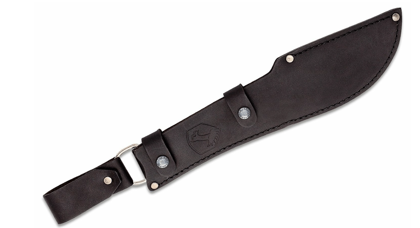 Kakovostno usnjeno etui z zanko, trdnimi šivi in zakovicami ščiti rezilo in omogoča varno nošenje na terenu.