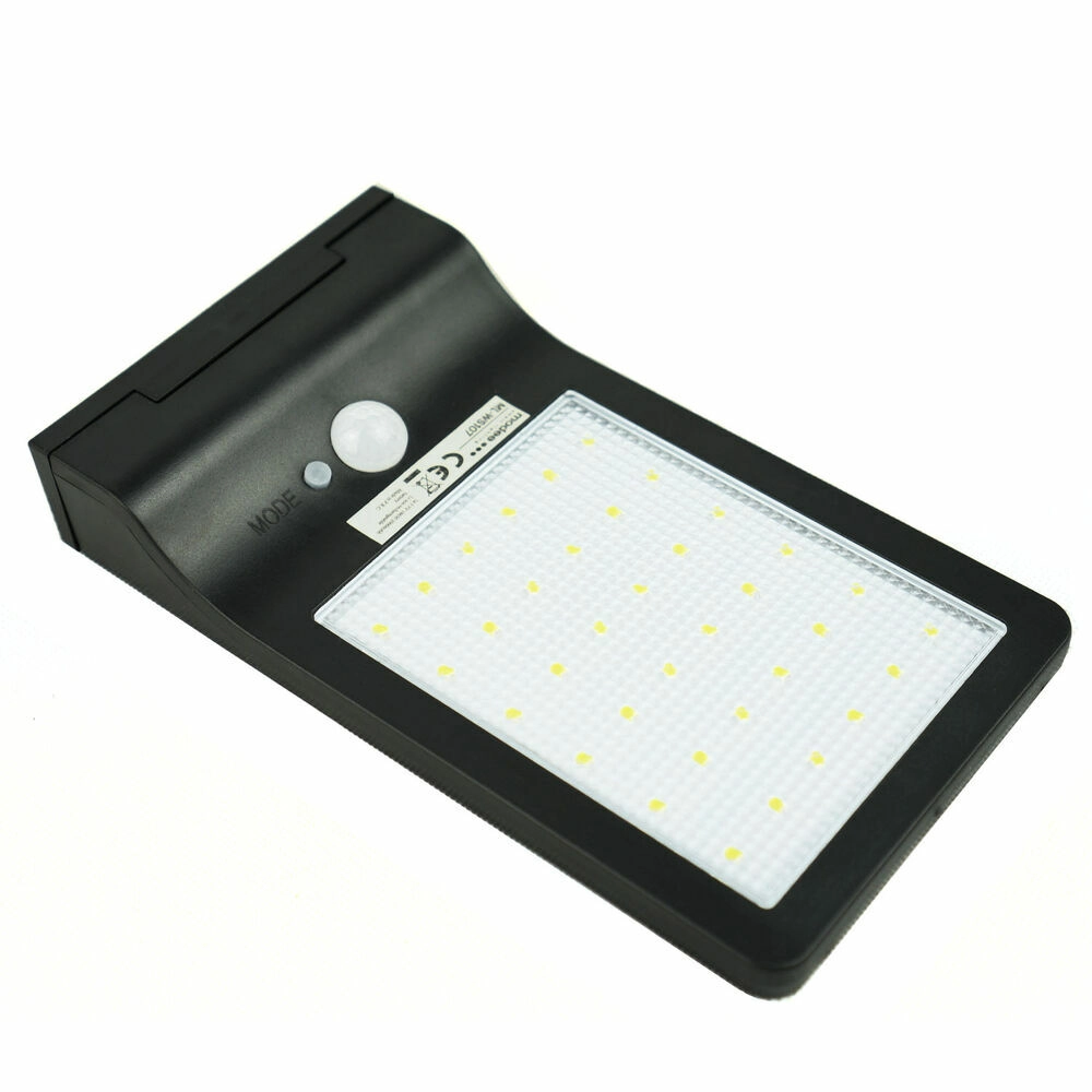 Kompaktna stenska sončna svetilka za zunanjost, ki se podnevi polni s soncem in se po temi samodejno vklopi. Zahvaljujoč senzorju gibanja poveča svetilnost do 300 lm, pri običajnem svetenju nudi orientacijsko svetlobo 3–5 lm. Ponuja hladno belo svetlobo 6000 K, dolgo življenjsko dobo 60.000 h in stopnjo zaščite IP44. Napaja jo zamenljiva Li‑ion baterija 18650 3,7 V / 2000 mAh.