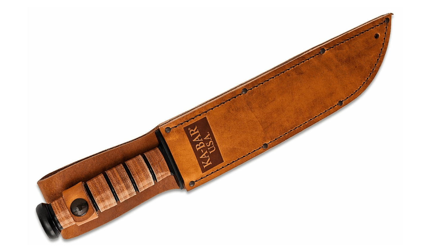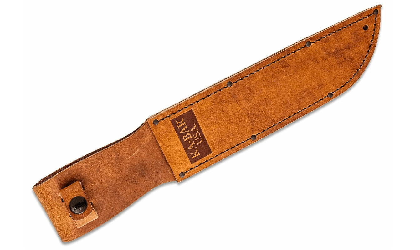 Vzdržljiva usnjena nožnica z zanko za pas zagotavlja varno nošenje in hiter dostop do noža na terenu.