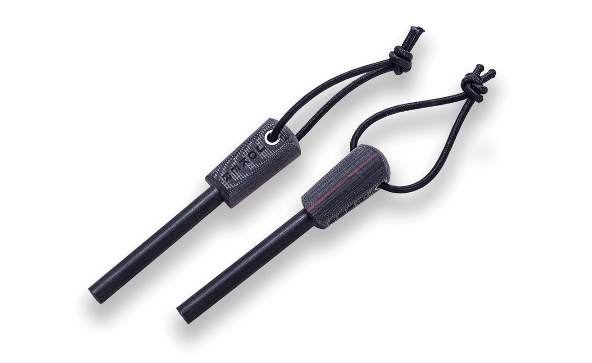 - Popolna oprema: usnjena nožnica, kresilo in 2 m paracorda v paketu.