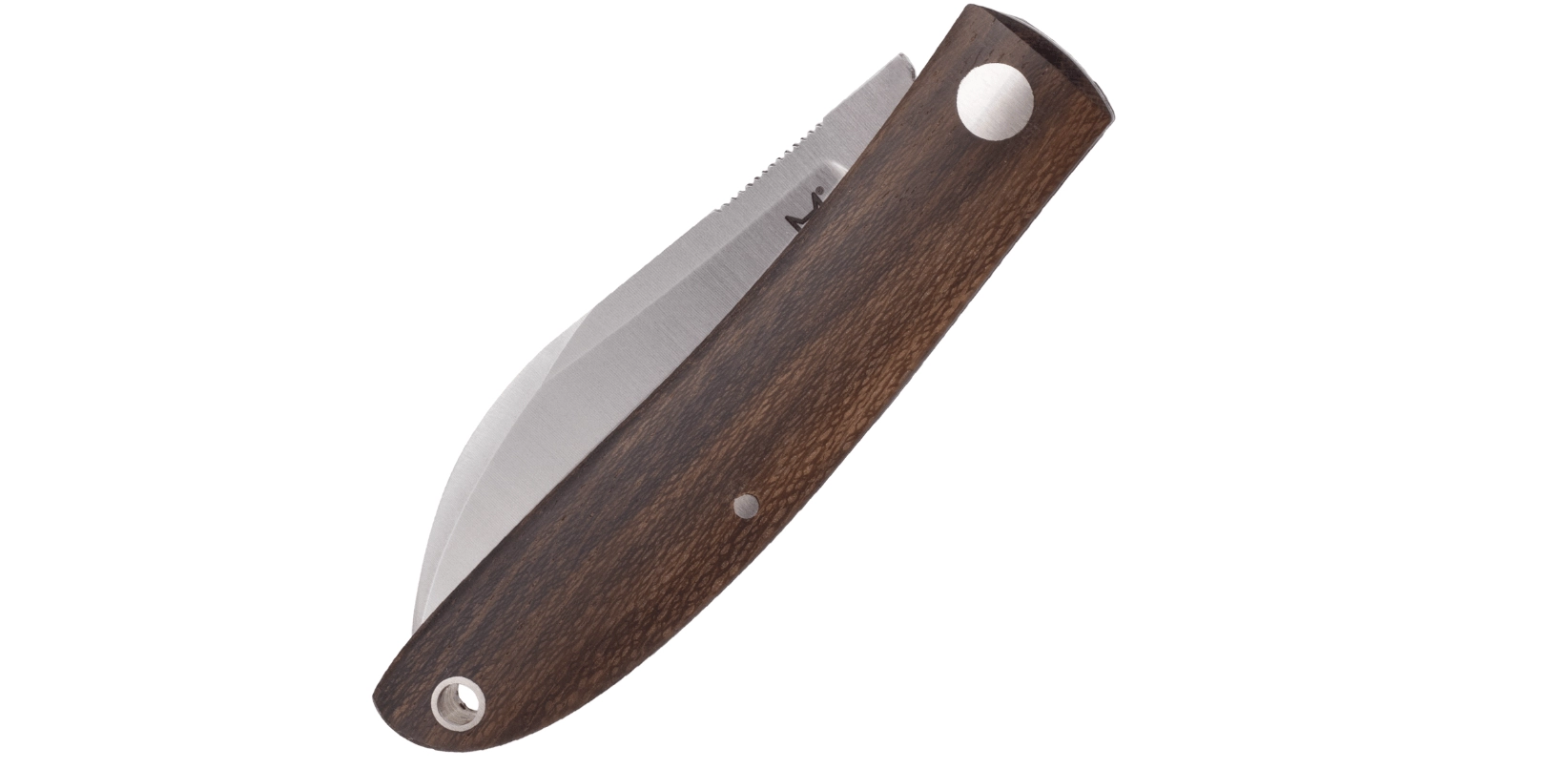 Eleganten EDC nož za vsak dan s vrhunskim jeklom M390, klasičnim odpiranjem z nohtnim zarezom in varnim slipjoint mehanizmom. Ročaj iz eksotičnega lesa Ziricote prinaša slog in odličen oprijem, v paketu pa je tudi praktično usnjeno etui.