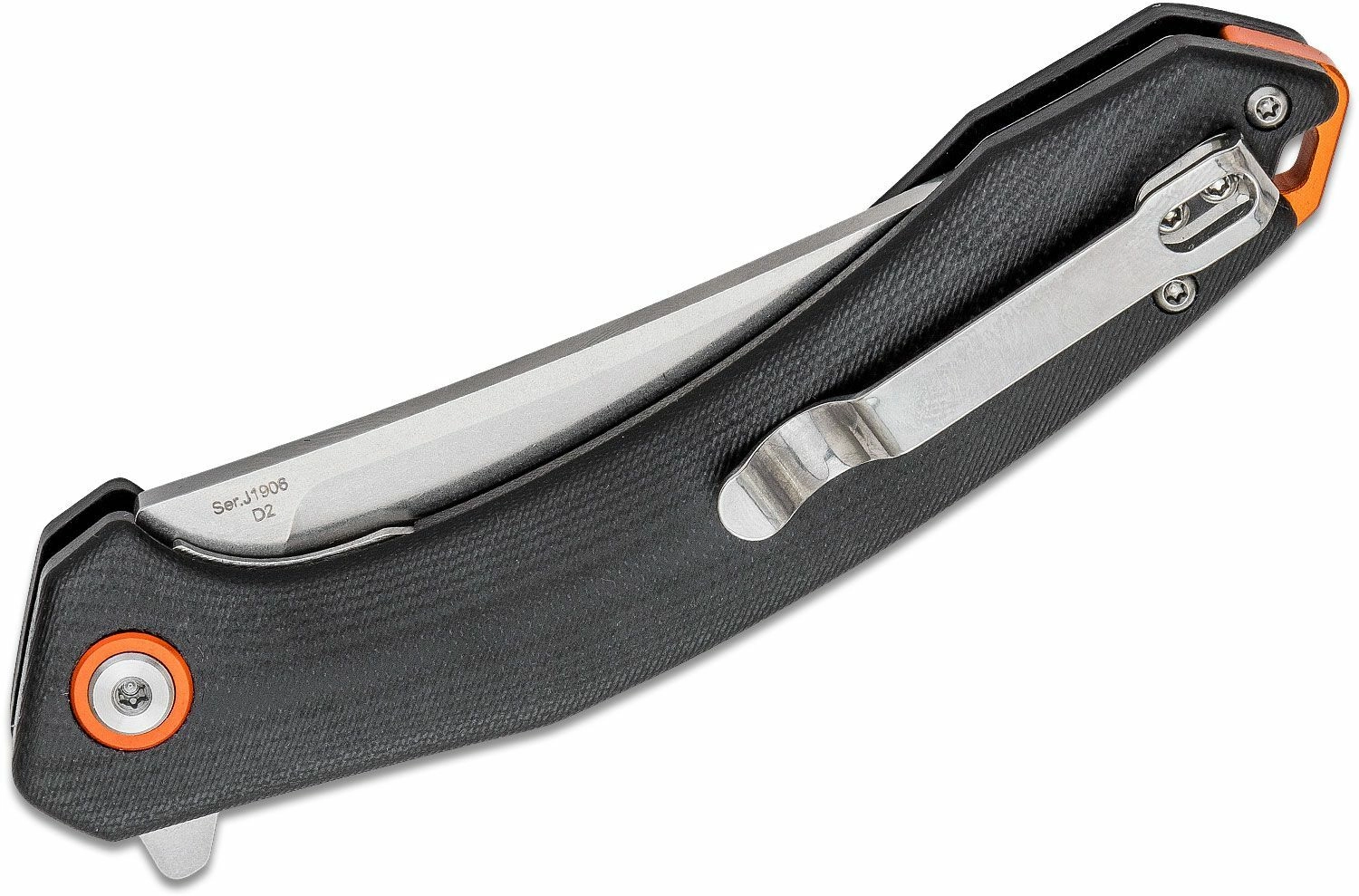 Odpiranje prek flipperja je hitro in tekoče, medtem ko linerlock varno drži rezilo pri uporabi. Ergonomičen ročaj iz G10, rezkan s CNC postopkom, ponuja zanesljiv oprijem tudi v mokrih razmerah. Praktična žepna sponka in odprtina za vrvico olajšata nošenje in dodatno zavarovanje noža.